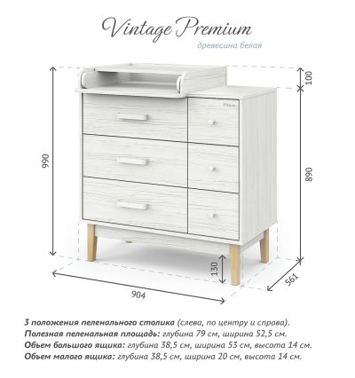 • высота пеленальной поверхности (комода без пеленального столика)– 89 см