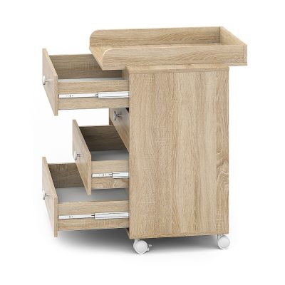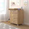 Пеленальный комод устанавливается на колеса с фиксаторами.