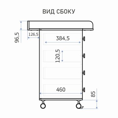 Габариты комода без столика: 46 х 70 х 84,5 см (глубина, ширина, высота).