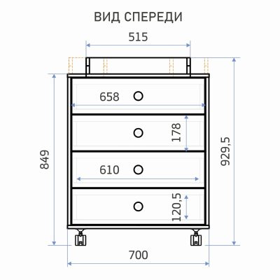 Четыре вместительных ящика детского комода, устанавливаются на качественные шариковые телескопические направляющие.