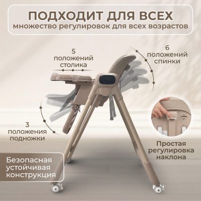 Это многофункциональный детский стульчик-электрокачели 4 в 1, который сопровождает малыша с рождения (0+) и на годы вперед, выдерживая нагрузку до 15 кг.