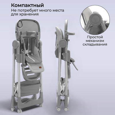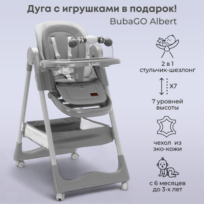 Стульчик для кормления BubaGO Albert легко и быстро превращается в шезлонг, за счет множества регулировок высоты подходит для эксплуатации с любым обеденным столом, а также компактно складывается, что делает его таким многофункциональным.