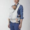 Имеются многочисленные положения для переноски, подходящие для любого этапа роста: начните с положения для переноски лицом к родителю, а затем, когда ребенок будет готов, перейдите в положение для переноски лицом вперед или назад. Каждый из них способствует здоровому развитию бедер и эргономически правильному М-образному положению (или согнутому и раскинутому положению), а также поддерживает С-образное положение позвоночника.