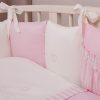 - пододеяльника. Простыни в комплекте оснащены резинкой, благодаря чему их легко заправлять и снимать. Такая простыня не будет съеживаться, когда ребенок ворочается во сне. Еще одна практичная деталь – дополнительный карман на защите, его можно использовать для хранения бутылочки или игрушек во время сна ребенка.