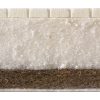100% натуральный материал, состоящий из волокон кокосового ореха, скрепленных натуральным латексом – вспененным соком каучукового дерева. Обладает потрясающими антиаллергенными и бактерицидными свойствами, поскольку кокосовое волокно не гниет ни при какой влажности. Один из самых жестких, упругих и эластичных наполнителей, он идеально поддерживает позвоночник маленького ребенка во время сна. Кокосовая койра не деформируется в течение многих лет и обеспечивает отличную циркуляцию воздуха и теплообмен. Среди жестких наполнителей матрасов она занимает лидирующую позицию.
