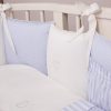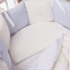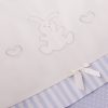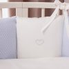 - пододеяльника. Простыни в комплекте оснащены резинкой, благодаря чему их легко заправлять и снимать. Такая простыня не будет съеживаться, когда ребенок ворочается во сне. Еще одна практичная деталь – дополнительный карман на защите, его можно использовать для хранения бутылочки или игрушек во время сна ребенка.